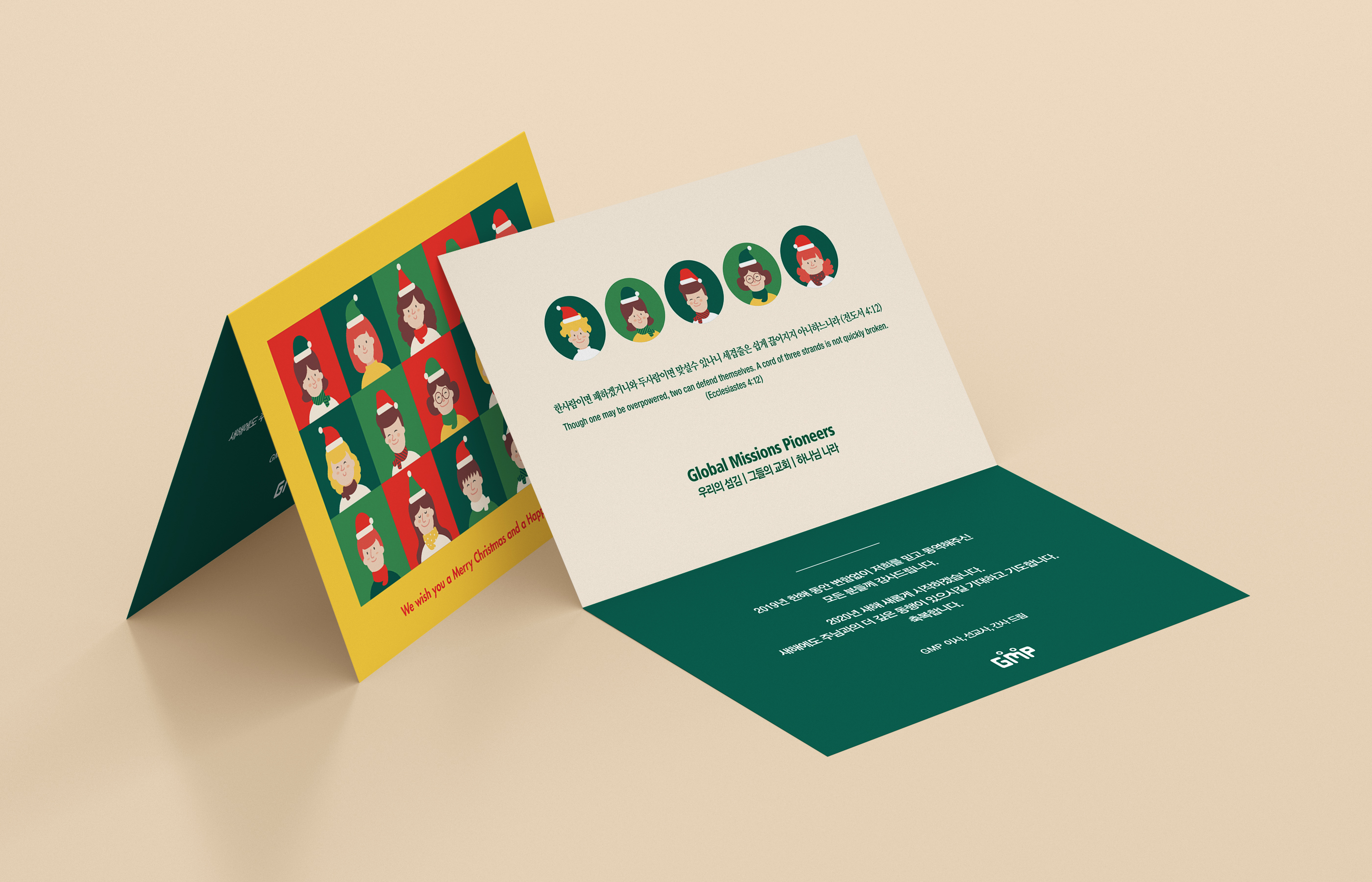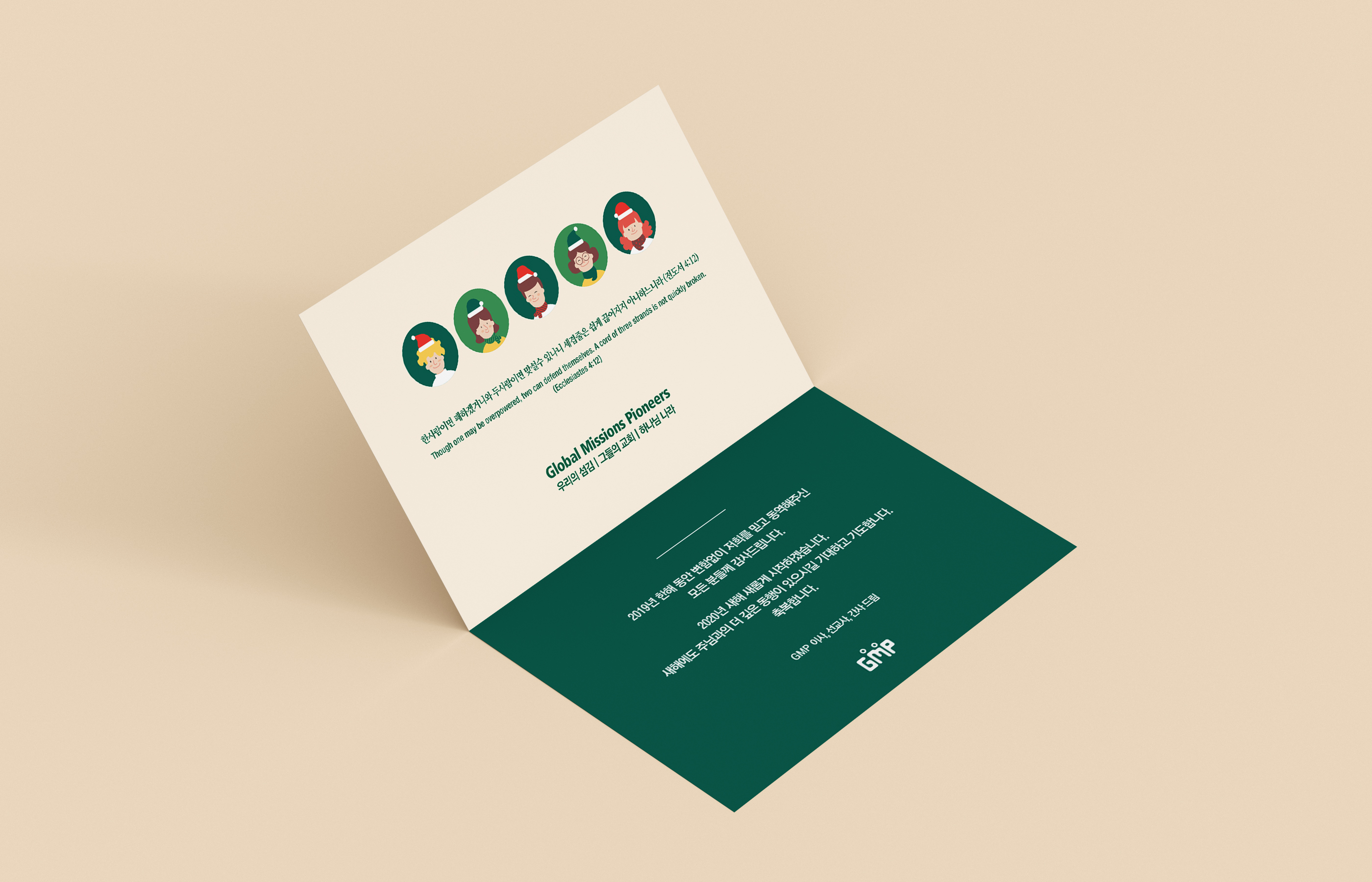 크리스마스와 새해를 맞이하여 세계 각국의 GMP 선교사들에게 발송한 연하장이다.