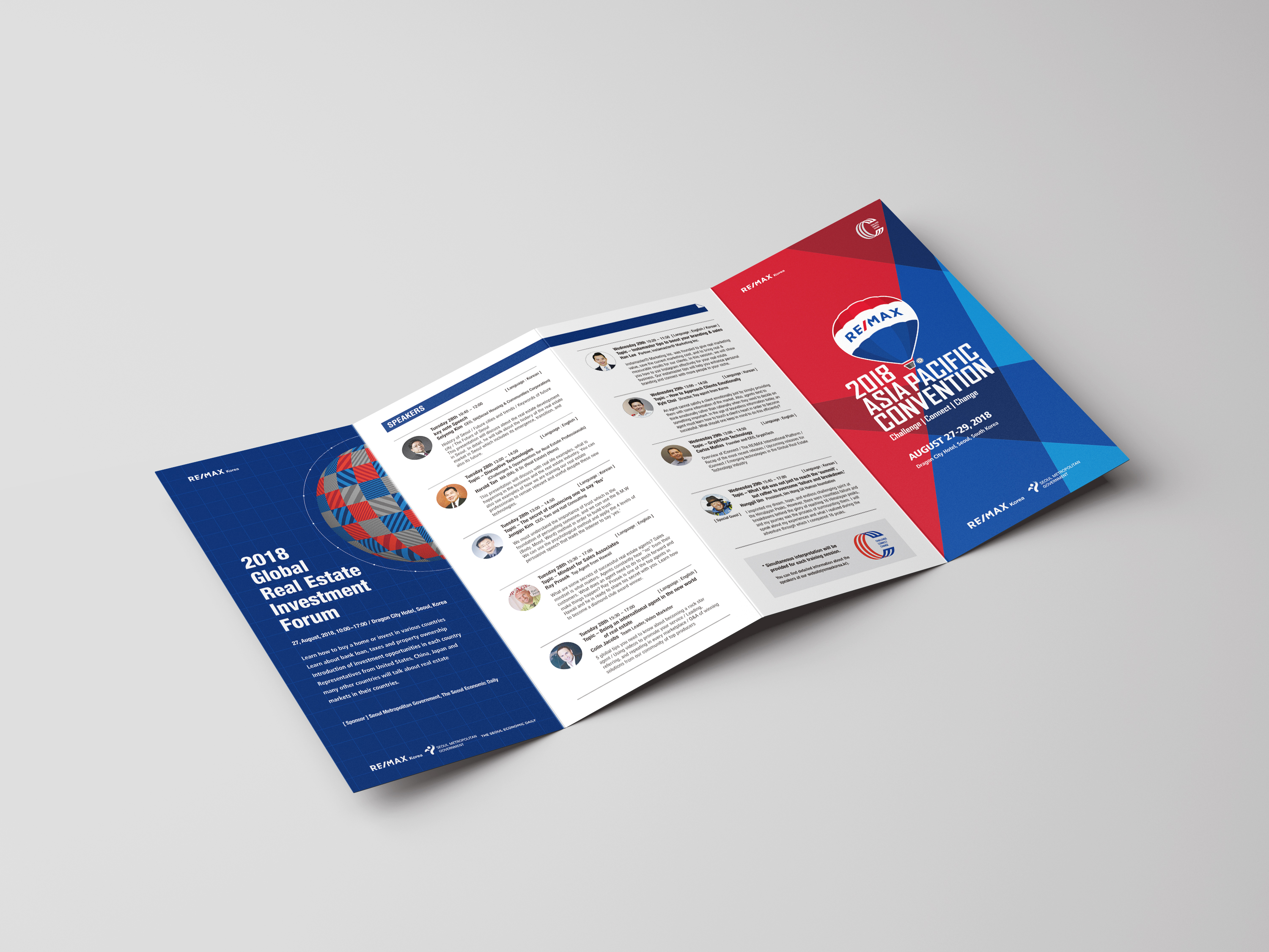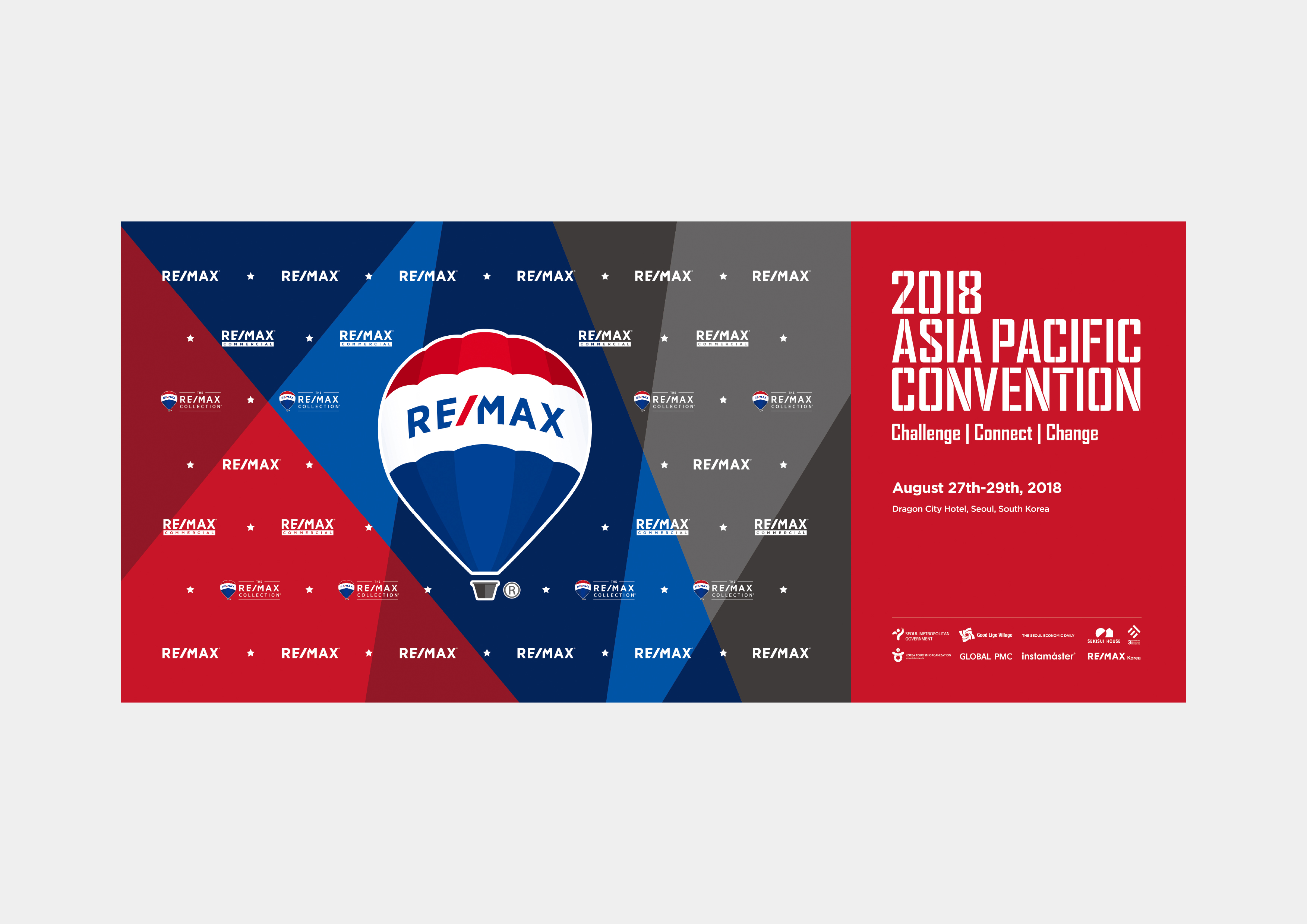 리맥스아시아퍼시픽컨벤션은 전세계에서 온 리맥스 부동산전문가들에게 리맥스의 아이덴티티 이미지를 강하게 심어주고 꿈을 고취시키며, 한국을 알리는 기회와 소통의 장이었다. EI에서부터 엠블럼, 포스터, MICE인천공항멀티큐브동영상광고그래픽, 포토존, 팜플렛, 기념품, 명찰, 컨벤션홀의 각종 배너, 현수막, 사인 등 파생 어플리케이션 디자인과 인쇄제작을 담당하였다.