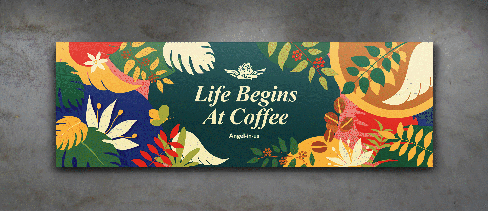 Angle's Sweet Garden - 천사가 정성껏 가꾸는 아름다운 가든을 표현하고자 하였다. 천사의 날개와 커피나무, 커피콩, 꽃, 식물 등의 자연그래픽은 쉼이 필요한 현대인들에게 삶의 여유와 마음의 평화를 선사하고자 하는 의미에서 디자인하였다.