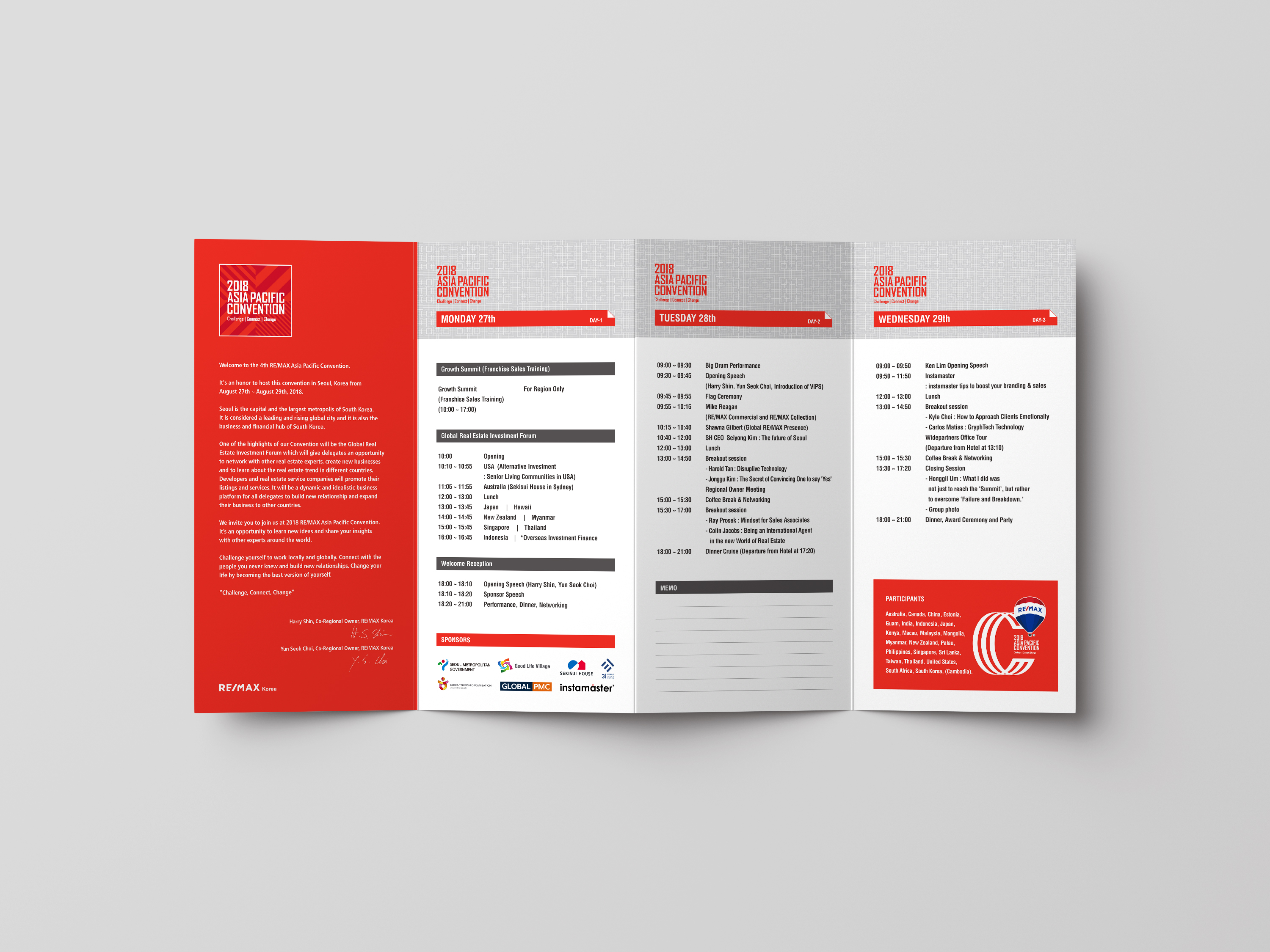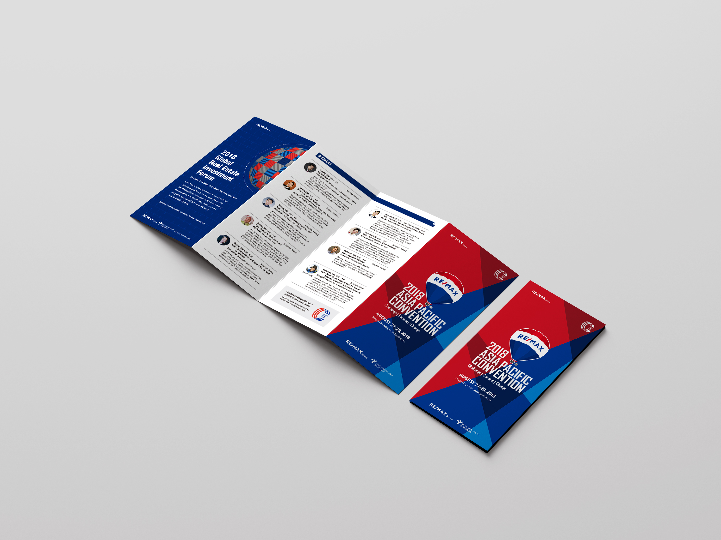 글로벌 부동산 프랜차이즈 업체인 리맥스의 메인컬러인 레드와 블루계열을 사용하여 리맥스의 아이덴티티를 강조하였다. 컨벤션 포럼의 강연자 및 일정의 상세내용을 담아 아코디언접지 팜플렛을 디자인하였다.