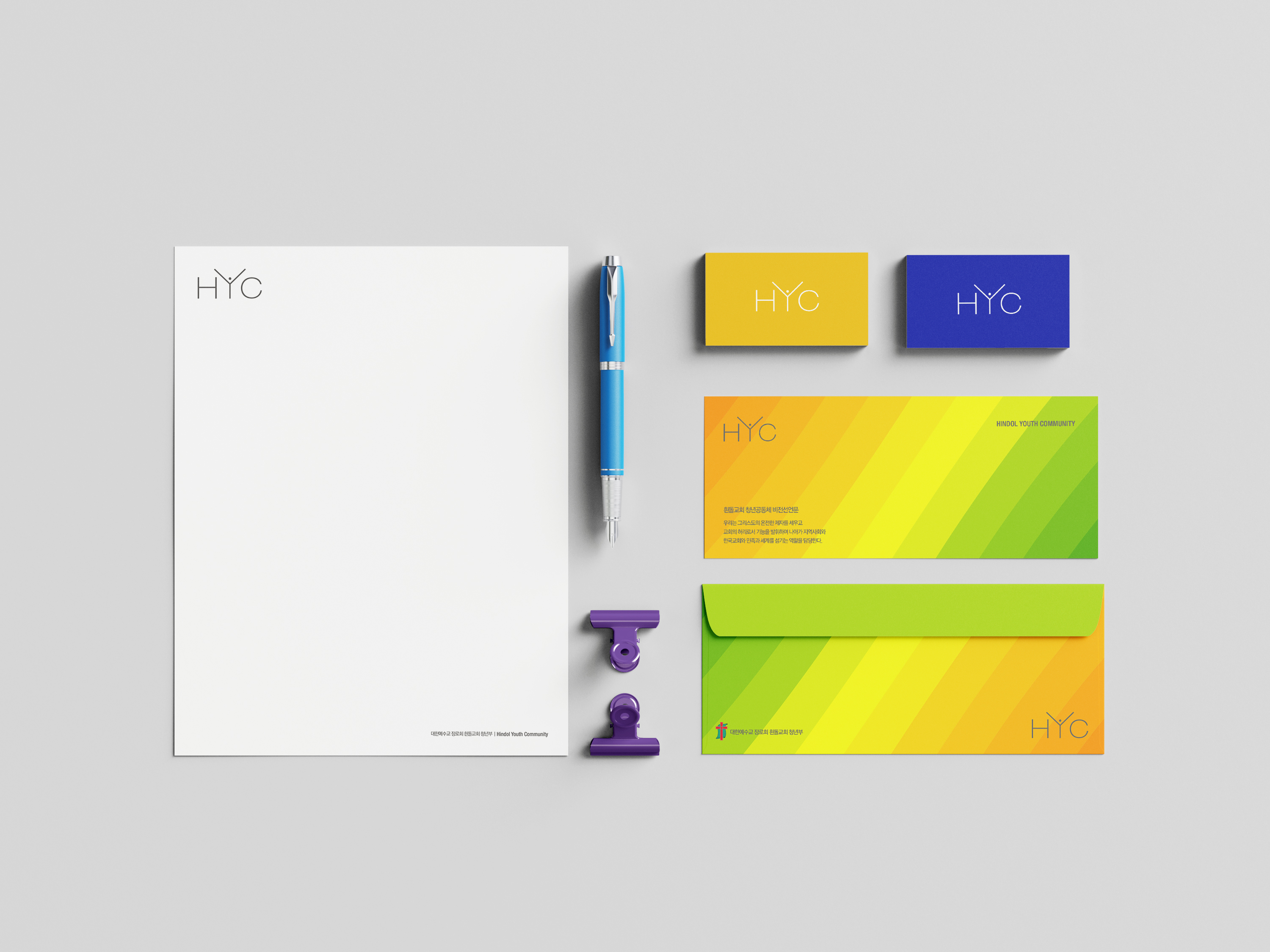 흰돌 청년 공동체를 영어로 표현한 로고작업이다. 중간에 Y는 손을 뻗어 찬양하는 청년들, 그리고 열린마음으로 세상과 이웃을 품는 청년들을 형상화하여 만든 공동체 로고이다.