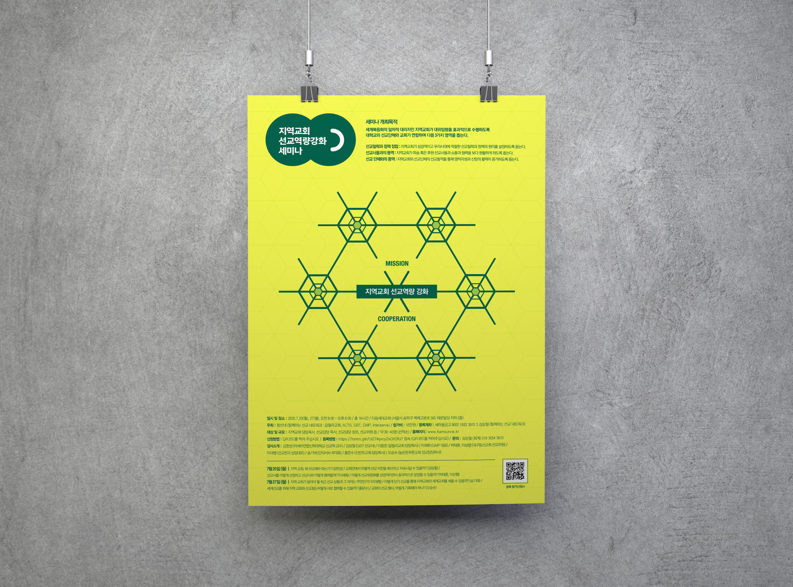 지역교회와 선교단체의 만남을 통해서 선교역량을 강화하고자 하는 목적에서 열린 세미나 홍보 포스터이다. 물이 가지는 유연함과 건강한 물 안에서 보여지는 결정체를 네트워크라는 컨셉과 결합해 보았다.