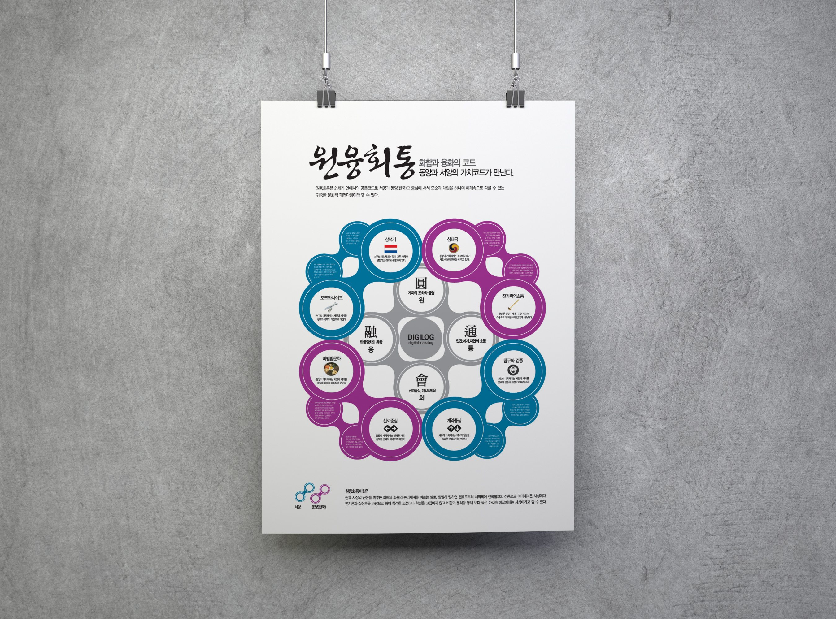 This is an information poster based on reading a book named "Digilog"(Digital + Analog), a word coined by its writer. This can give various approaches to improvement in all areas such as tech, ism, culture and so on. Therefore, people could get better results by trying processes of mixes and transformations. This is especially about culture mix (Western and Oriental culture) and is a methodical and logical prototype to find something better for each other.