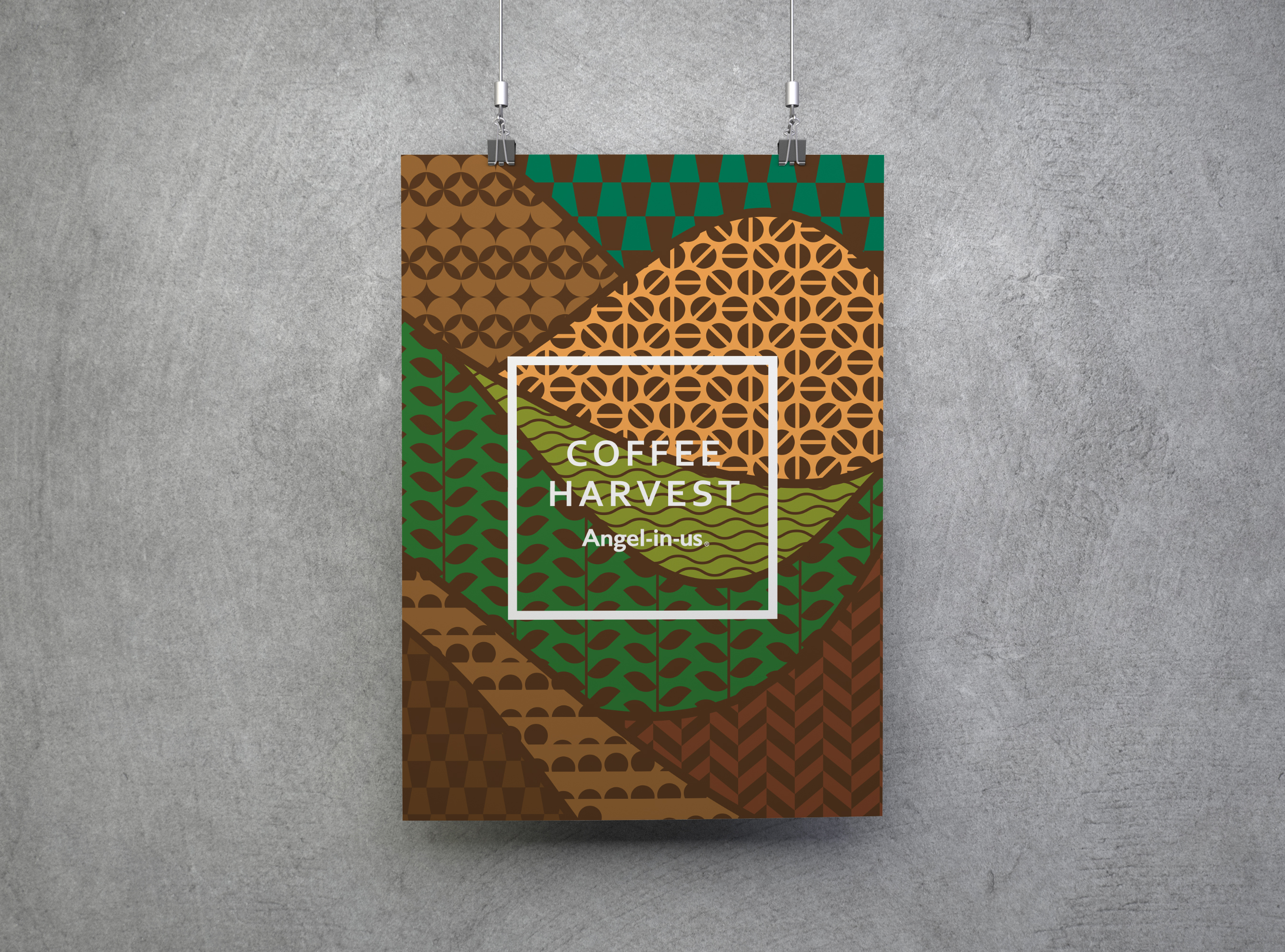 Coffee Harvest - 커피콩, 커피나무, 커피잔, 커피콩이 발아하고 자라는 과정 등을 단순화 및 패턴화하여 커피가 재배되는 땅(자연환경)안에 담아보았다. 커피와 함께 누리는 풍성한 삶의 윤택함를 전달하고자 하였다.