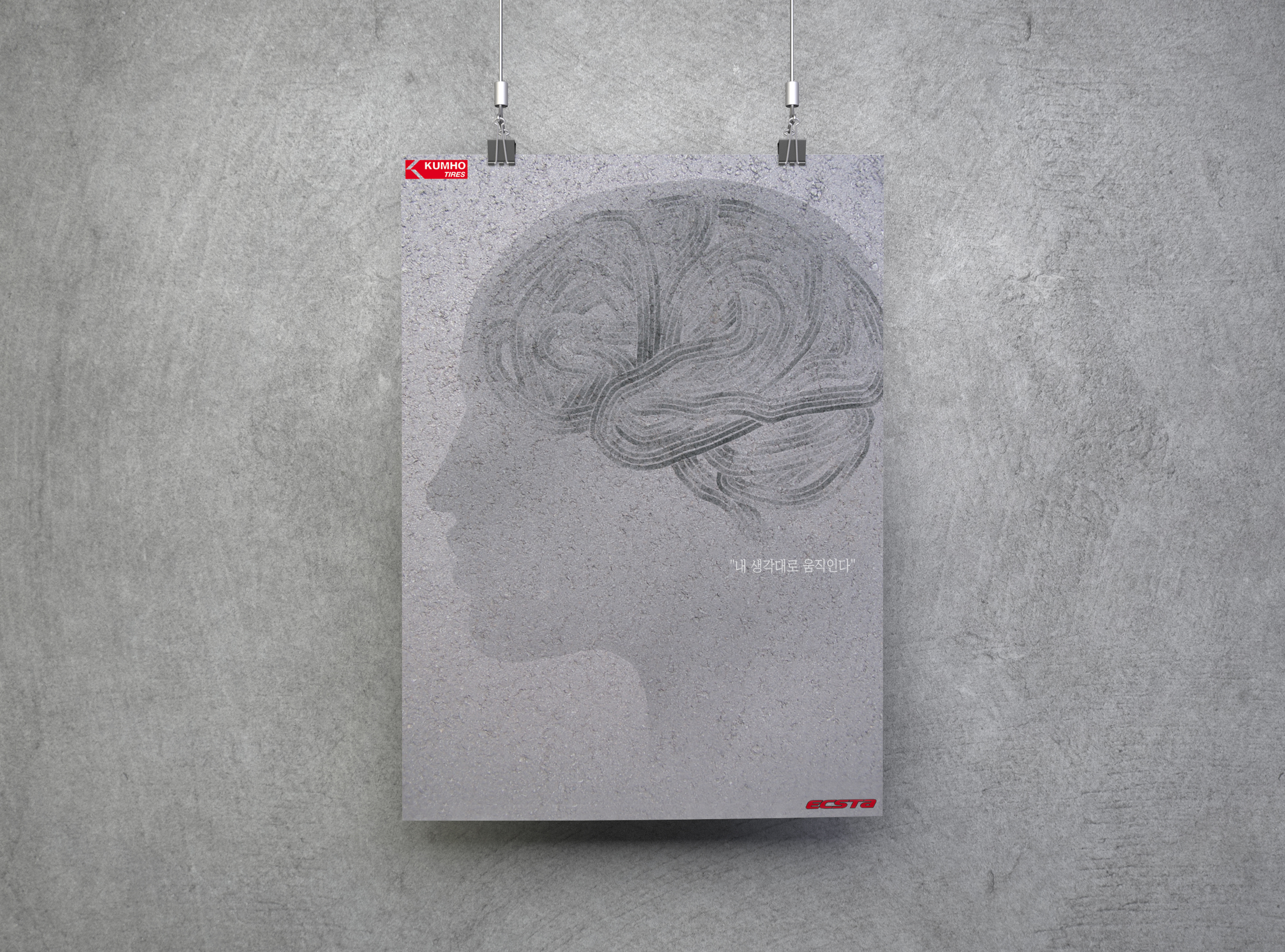 This is a poster for a newspaper's advertisement. The concept is related to a new tire that has the powerful functions of driving and stopping : If you use it, you can drive as you think.
